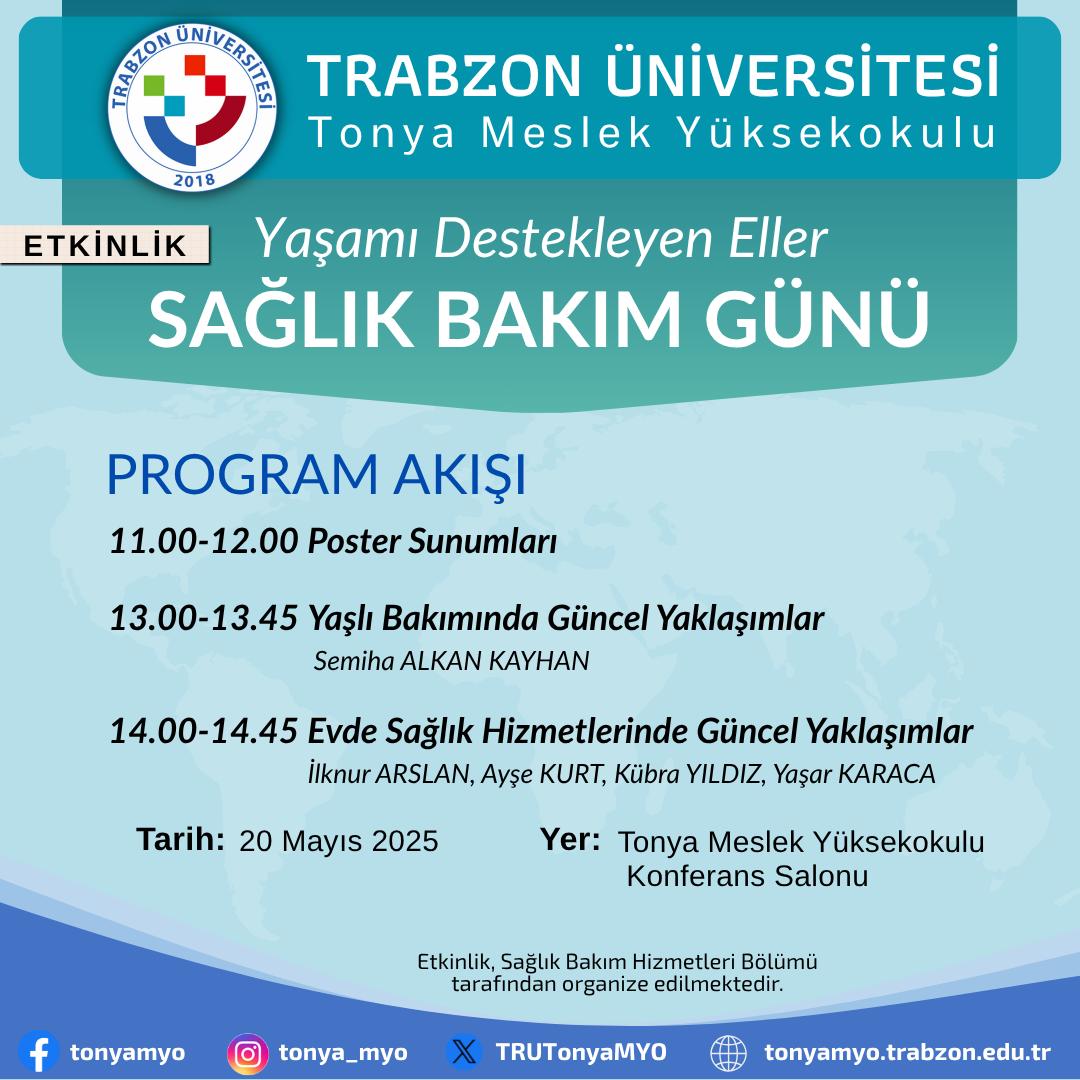 Meslek Yüksekokulumuz Sağlık Bakım Hizmetleri Bölümü (Yaşlı Bakımı - Evde Hasta Bakımı Programları) tarafından "Sağlık Bakım Günü" etkinliği düzenlenecektir. Etkinlik programına ulaşmak için linke tıklayınız.