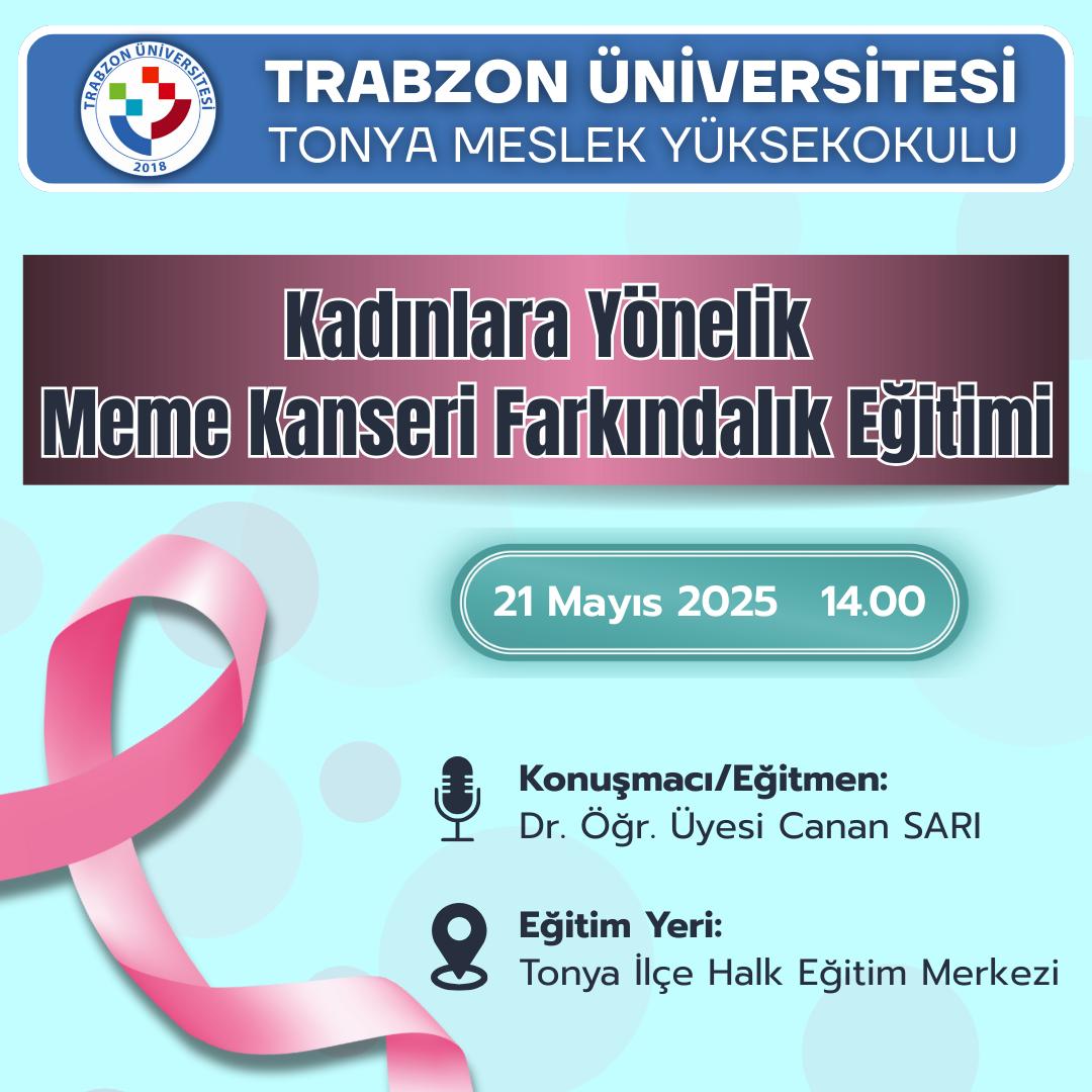 Kadınlara yönelik olarak düzenlenecek olan Meme Kanseri Farkındalık Eğitimi'nin etkinlik programına ulaşmak için linke tıklayınız.